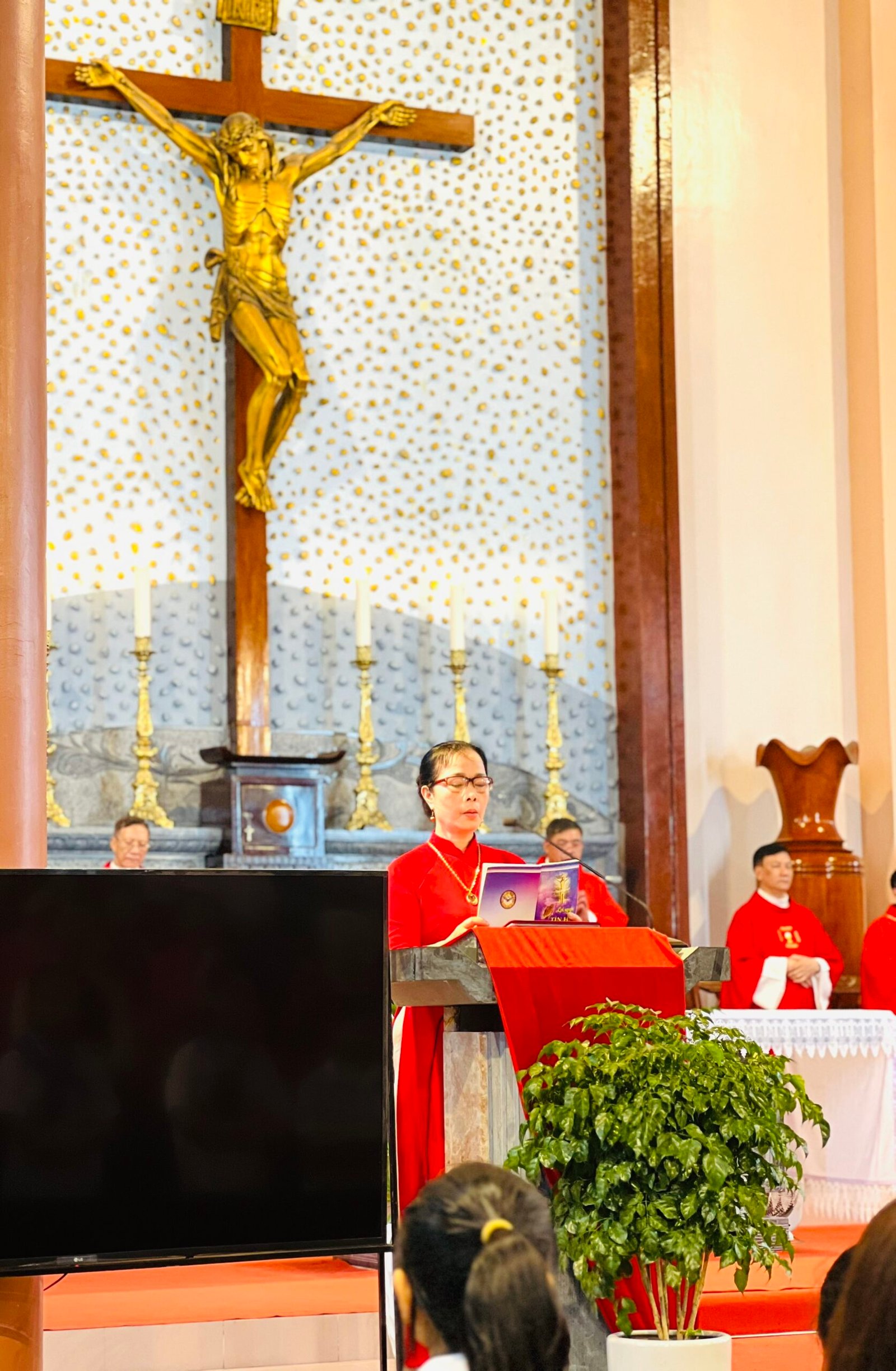 Dứt hát kinh Te Deum – Tạ ơn Chúa, cha xứ Gioan ban phép lành Thánh Thể, cất Mình Thánh Chúa và cộng đoàn bước vào Thánh lễ.